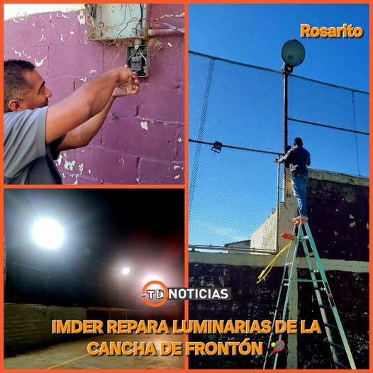 En respuesta a las solicitudes de usuarios de la cancha de frontenis ubicada en la Unidad Deportiva Rosarito (Ruffo Appel), personal del IMDER realizó la reparación y mantenimiento de las luminarias que presentaban fallas, garantizando condiciones adecuadas para la práctica segura del deporte, especialmente en horarios vespertinos.