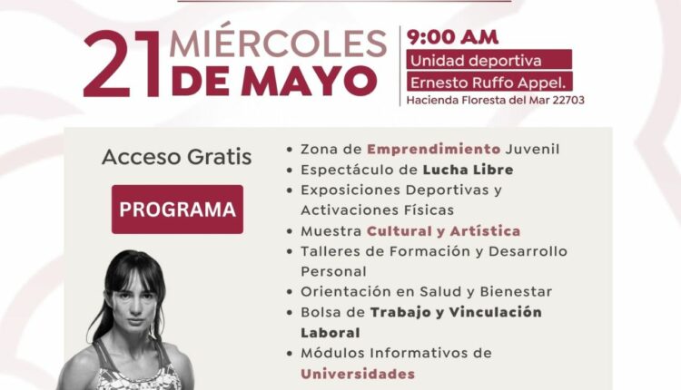 El evento se llevará a cabo el miércoles 21 de mayo, a partir de las 9:00 a.m., en la Unidad Deportiva Ernesto Ruffo Appel, ubicada en Hacienda Floresta del Mar 22703. La entrada es completamente gratuita.