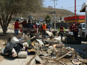 Posteriormente, en la calle del Arbusto del fraccionamiento Villa del Álamo, la delegada de Sánchez Taboada, Teresa García, acompañada por residentes de la zona, supervisaron los trabajos de limpieza y retiro de 112 metros cúbicos de azolve del canal pluvial ubicado en el área, así como la recolección de tres toneladas de basura pesada y la reparación de lámparas de alumbrado público.