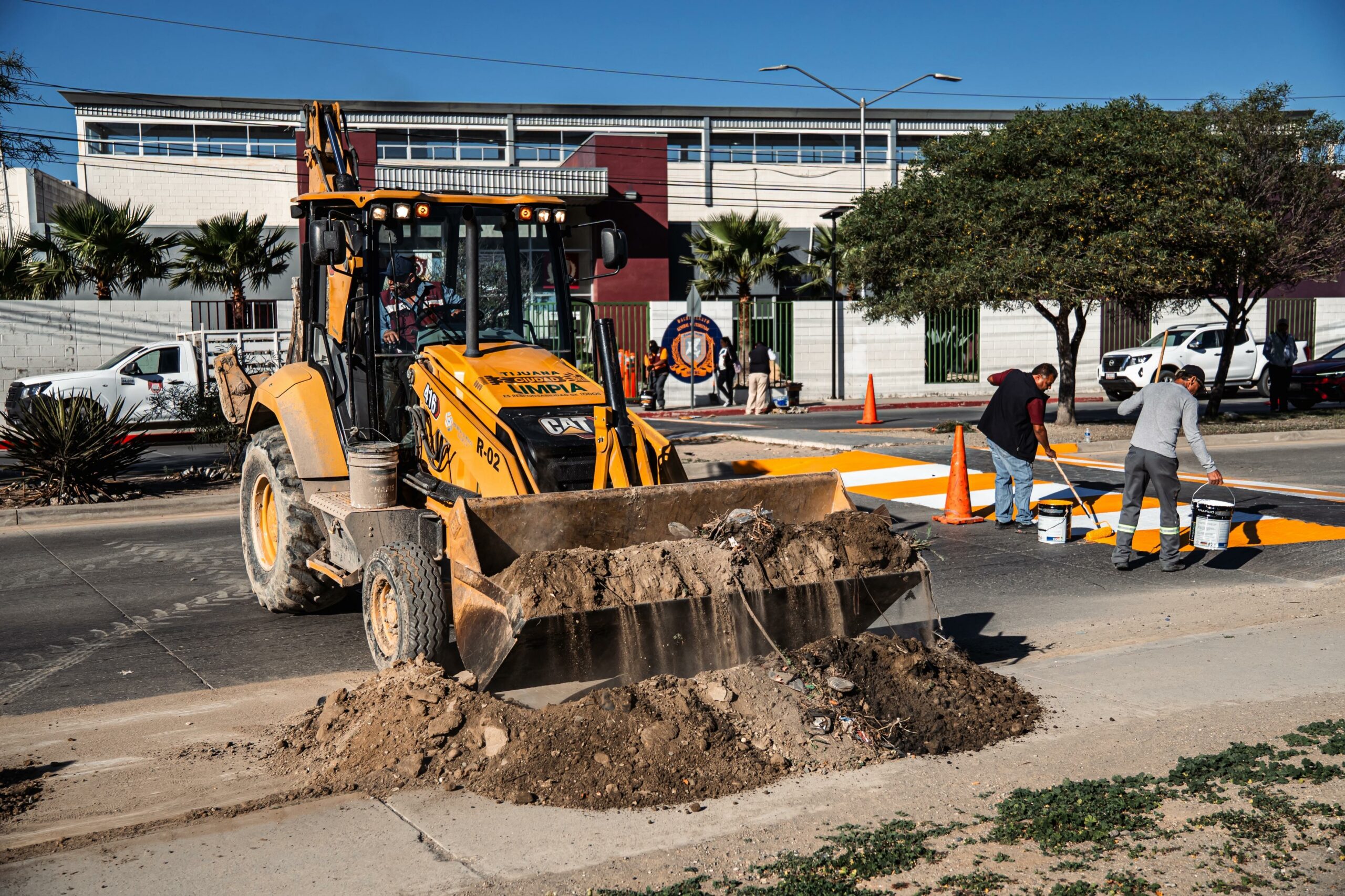 Cómo primer punto, el personal del Gobierno de la Ciudad, acudió a las inmediaciones de la Escuela Preparatoria Militarizada General Enrique Bordes Mangel en el fraccionamiento Natura, donde se realizaron trabajos de poda de palmeras y pintado de 150 metros lineales de cruces peatonales, señalamiento vial y de la cancha deportiva; además del retiro de azolve y mantenimiento de alumbrado público, beneficiado a más de 4 mil tijuanenses.
