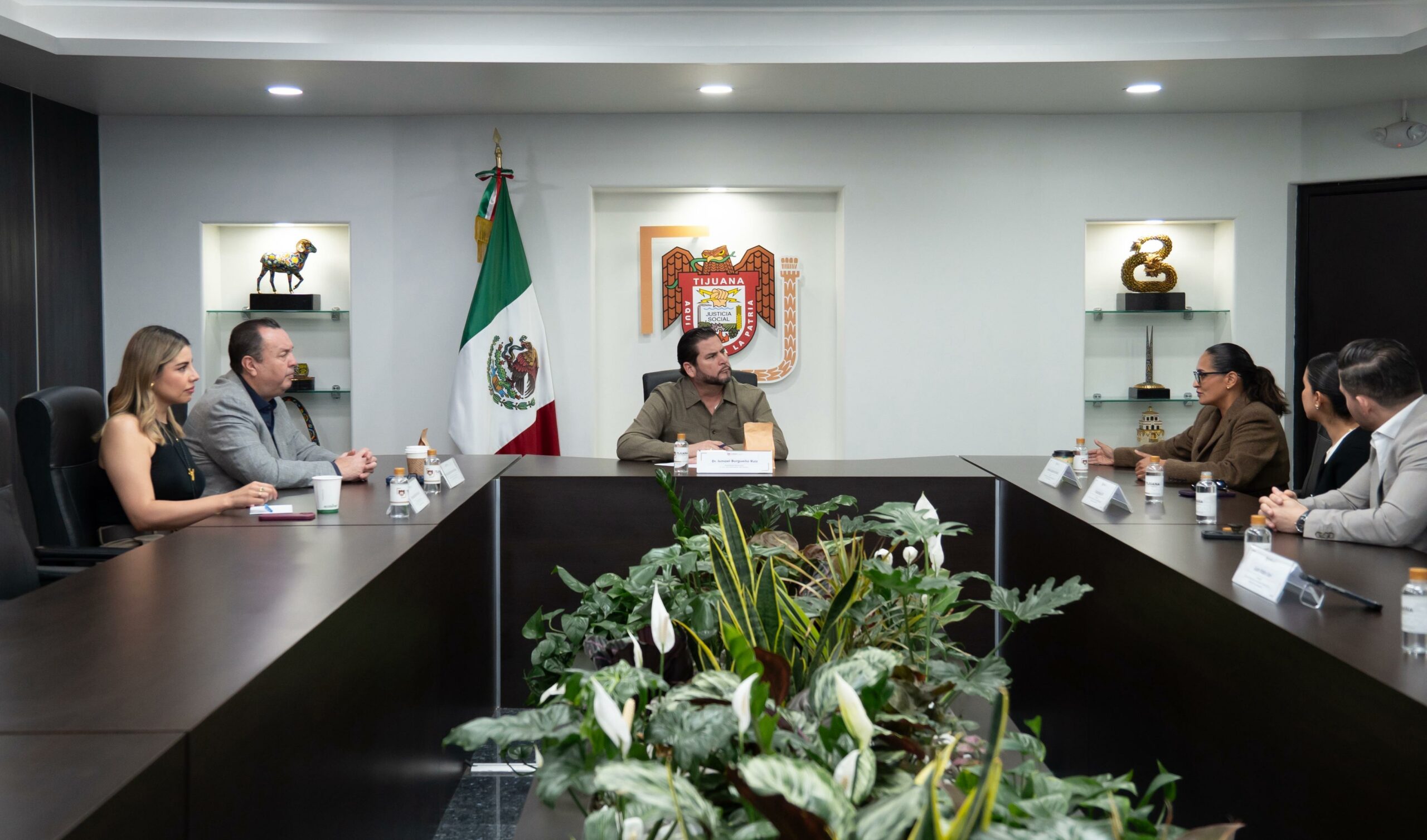 El presidente municipal, Ismael Burgueño Ruiz, sostuvo una reunión con la presidenta de la Cámara Nacional de la Industria de Restaurantes y Alimentos Condimentados (Canirac) Tijuana, Rebeca Aguilar Santuario, así como con representantes de este organismo, en cuyo marco refrendaron el compromiso de trabajar de manera coordinada entre gobierno y sector productivo, en favor del desarrollo económico ordenado y la prosperidad de la ciudad.