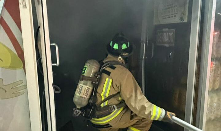 Bomberos de Playas de Rosarito actúan con rapidez ante incendio en plaza comercial