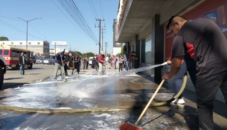 Posteriormente, las obras continuaron sobre el bulevar Díaz Ordaz, de la Delegación La Mesa, donde se intervinieron cerca de mil 700 metros cuadrados, con el barrido y lavado de la banqueta, contando con el valioso apoyo de comerciantes de la zona quienes se sumaron a los esfuerzos de limpieza.
