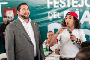 El presidente municipal estuvo acompañado por la Síndica Procuradora, Teresita Balderas Beltrán; la Oficial Mayor, Nelly Pabello Vega y el Consejero Jurídico, Alejandro Rivero Huerta; así como los papás festejados.
