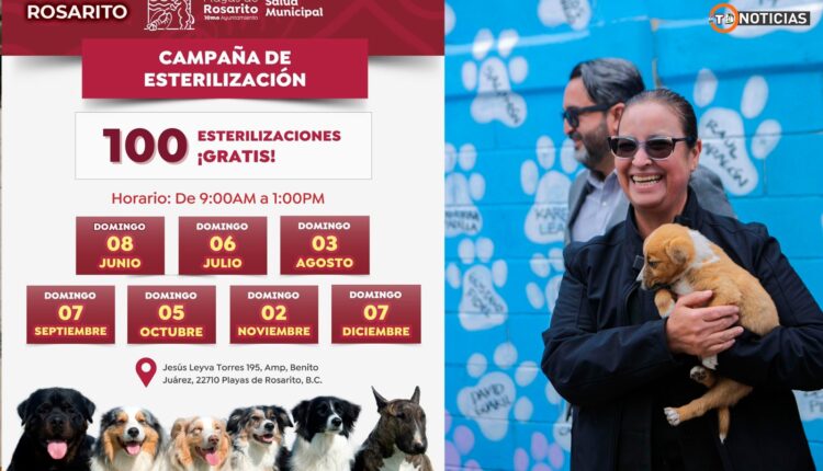Como parte de las acciones en favor de la salud pública y el bienestar animal, el Ayuntamiento de Playas de Rosarito, encabezado por la alcaldesa Rocío Adame, anuncia la realización de una importante Campaña de Esterilización Gratuita, que ofrecerá 100 esterilizaciones sin costo para la ciudadanía en cada jornada programada.