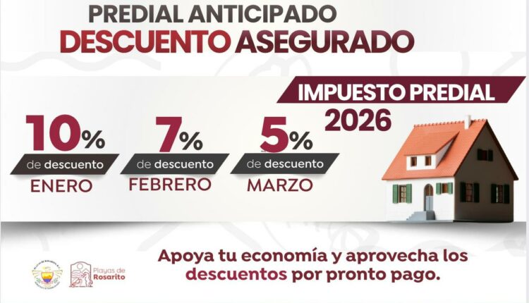 El 10° Ayuntamiento de Playas de Rosarito invita a las y los contribuyentes a realizar el pago del impuesto predial 2026, aprovechando los descuentos por pronto pago, los estímulos dirigidos a grupos prioritarios y la atención personalizada que se brinda a través de una ventanilla especial en la Dirección de Catastro Municipal.