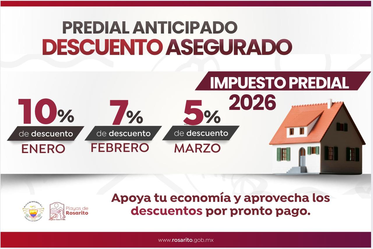 El 10° Ayuntamiento de Playas de Rosarito reitera su compromiso con la transparencia, la atención directa y el diálogo abierto, e invita a la ciudadanía a acudir a realizar el pago del impuesto predial en tiempo y forma, aprovechando los beneficios vigentes y contribuyendo al desarrollo ordenado, la seguridad y el bienestar de Playas de Rosarito.